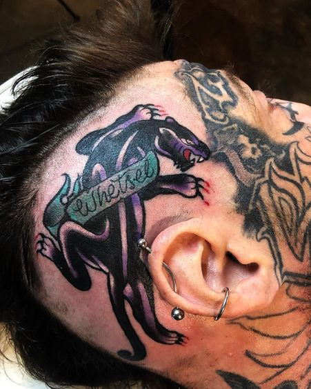 In 2001, after many years of hard labor on couches, I got my first shot of working in a tattoo shop. After a very short time, I did a tattoo that changed my career forever: a portrait on Katt Williams of his prized show dog with the name "Wiggles". The image went viral in the tattoo community, even before the advent of social media. I was then on known as the go-to artist for lettering. This drew the attention of celebrities and I had the opportunity to tattoo musicians Andrew WK and Justin Timberlake. After taking the last year to tour with and tattoo the Biebs, you can find me at Modern Primitive eating tacos in the back room.